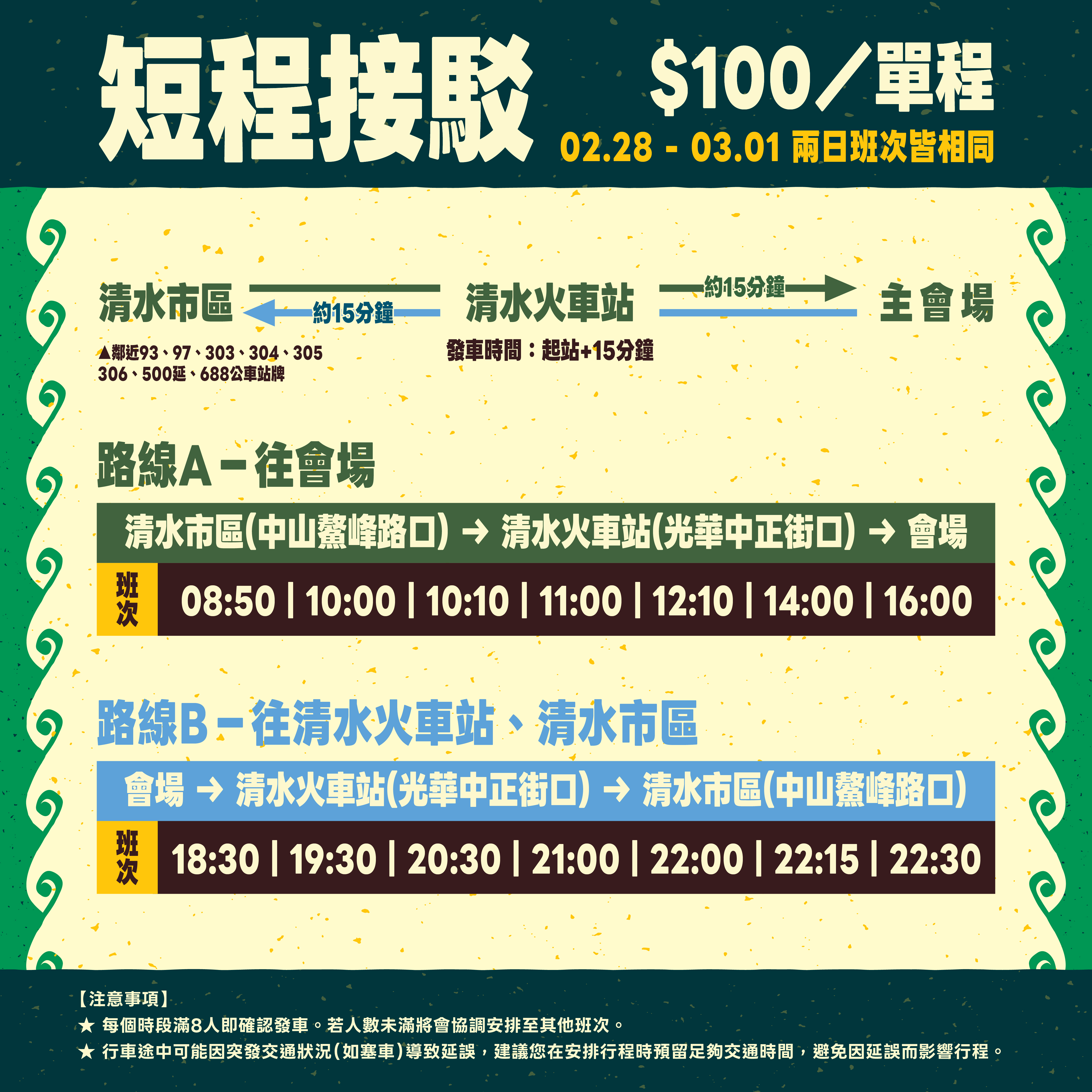 加開19:00、21:00、23:30 (往清水車站方向) |